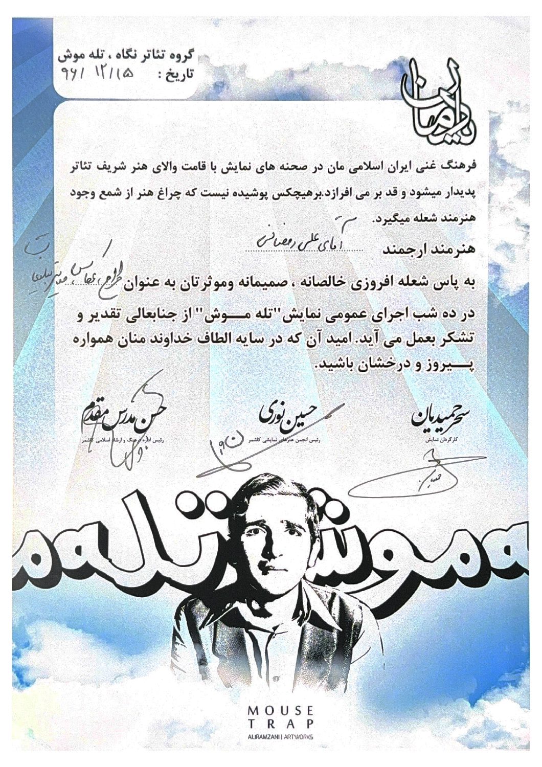 رتبه تخست مسابقات عکاسی تئاتر