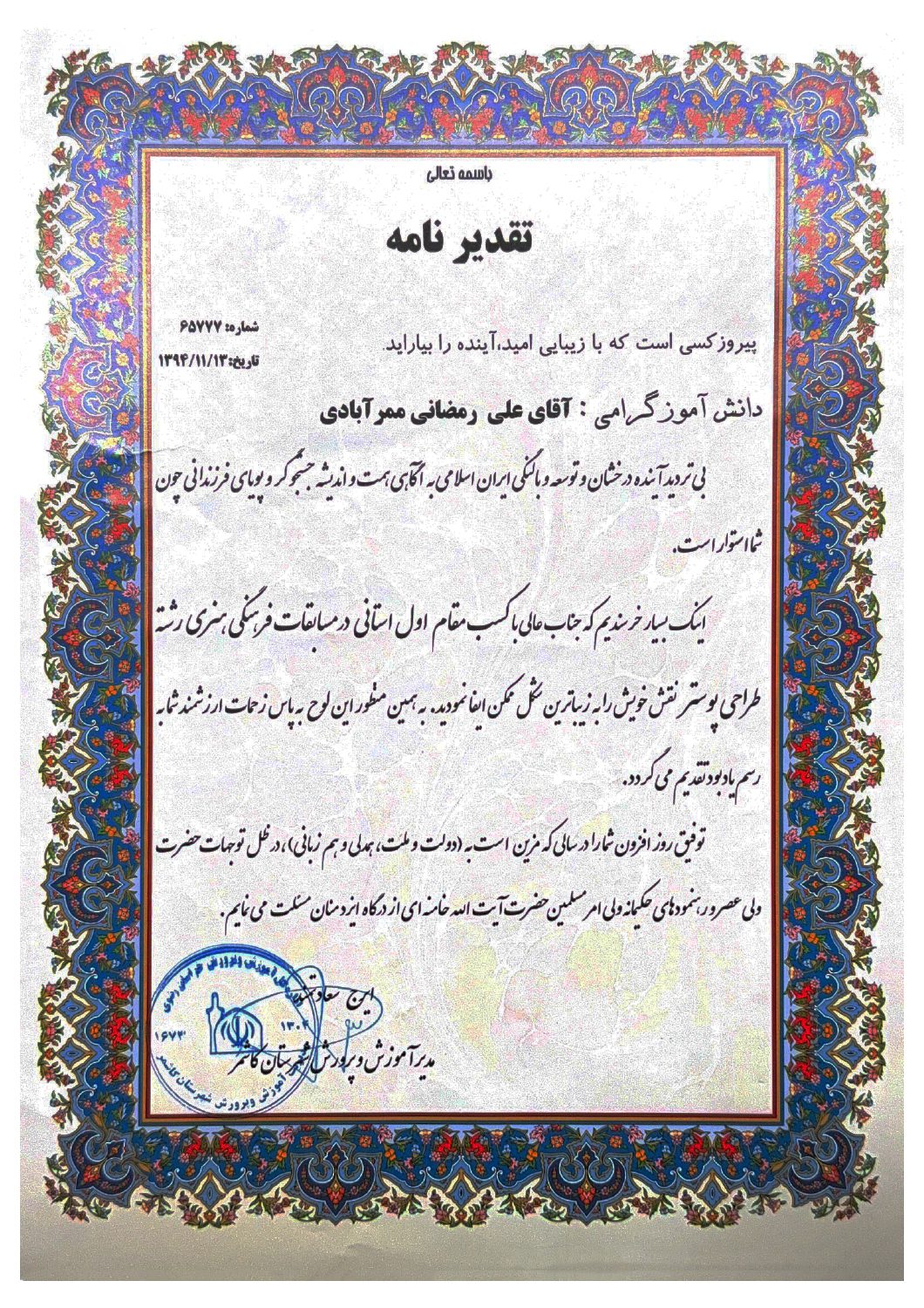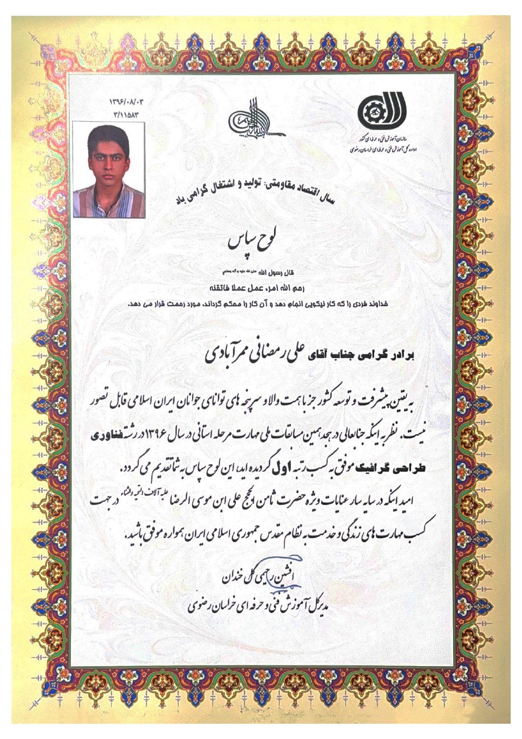 رتبه اول استان خراسان در فناوری طراحی گرافیک (دو سال)